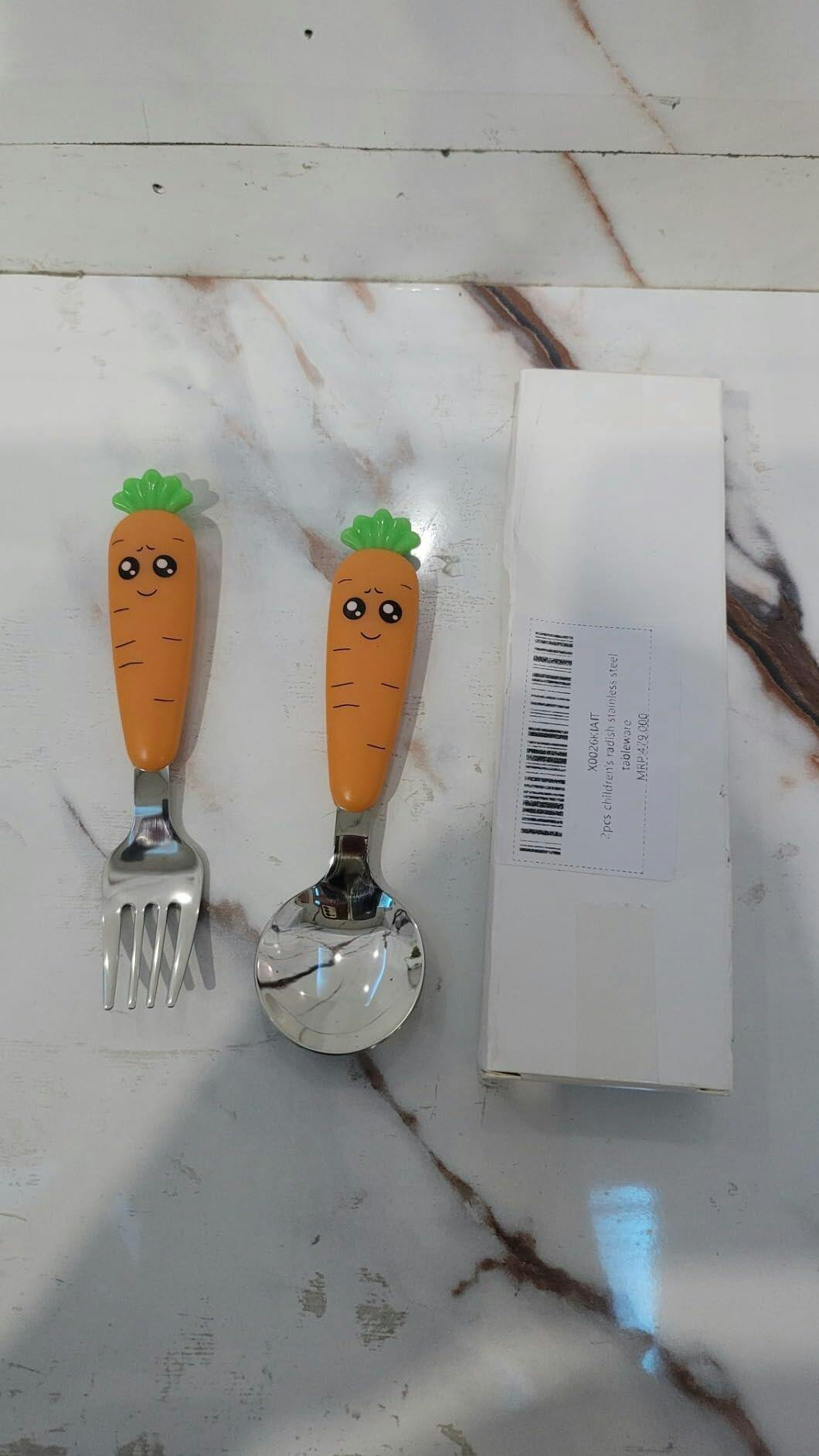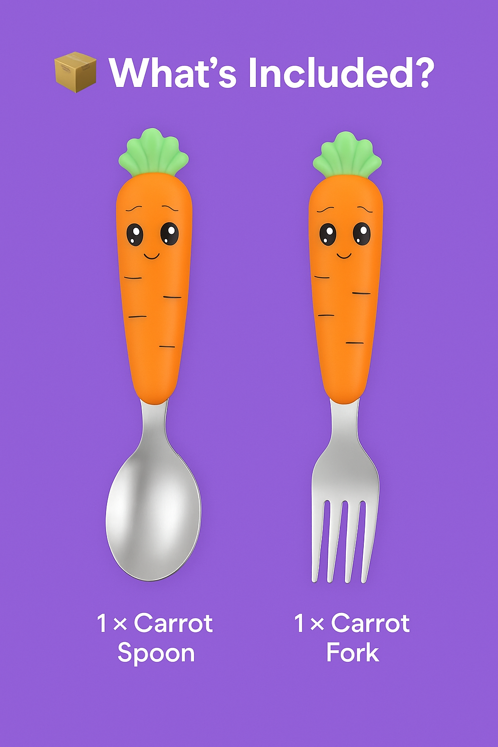 Kids Carrot Spoon & Fork Set – Safe PP Handle & 304 Stainless Steel | Little Handles